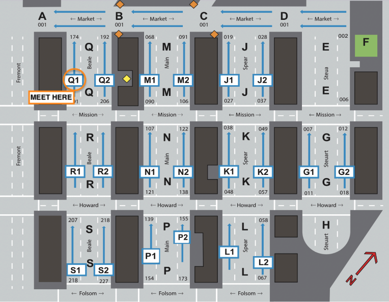 The closest BART station is the Embarcadero Station. BART will be busy so please plan ahead and pick an early train!